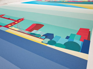 I met Eloise and her husband at a South London market. They’d recently moved into their home and were looking for items that would bring a bright splash of colour. Once they’d checked the size of their space, they got in touch, interested in one of my Ready-made prints on a bigger scale, and customising another piece.