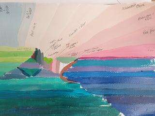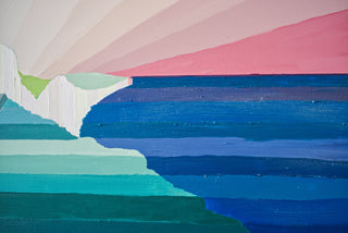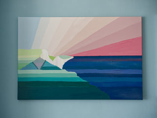 Lorna was looking for bespoke wall art to fill a large, empty wall in her living room. She liked the idea of a painting, with natural, loosely painted stripes. The result? An abstract, seascape original painting inspired by a location special to her - bringing meaning and colour to her home through art.