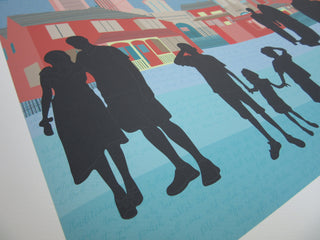 Our Family Fabric tells the story of a family, commissioned as a very special birthday present. The story covers how the family has grown, from the couple on their wedding day, to their children, in-laws and grandchildren today.
